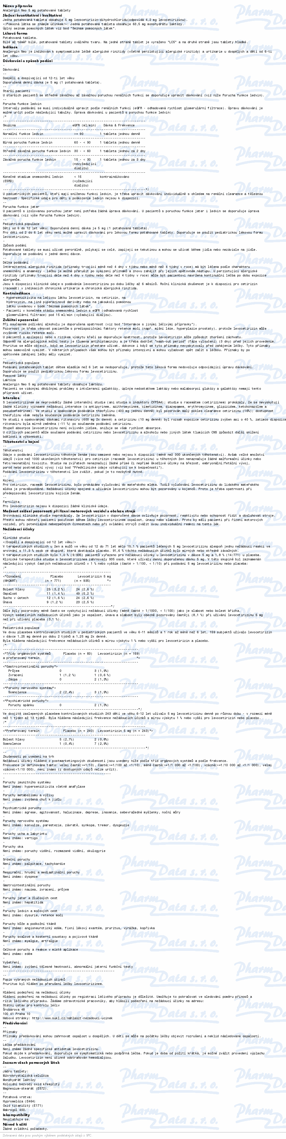 Přípravek Analergin Neo 5 mg se používá k léčbě příznaků spojených s alergickými stavy, jako je senná rýma, přetrvávající alergická rýma, chronická kopřivka. Čtěte pozorně příbalový leták. číst více