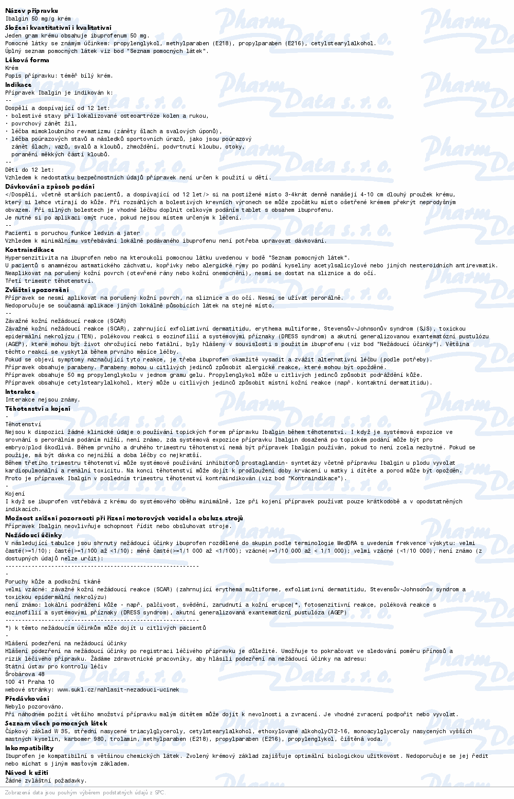 Ibalgin krém obsahuje léčivou látku ibuprofen, který působí protizánětlivě. Je vhodný pro léčení místních projevů revmatických i nerevmatických bolestivých stavů pohybového ústrojí. V postiženém místě tlumí zánět, snižuje otok a potlačuje bolest. Čtěte pozorně příbalový leták. číst více