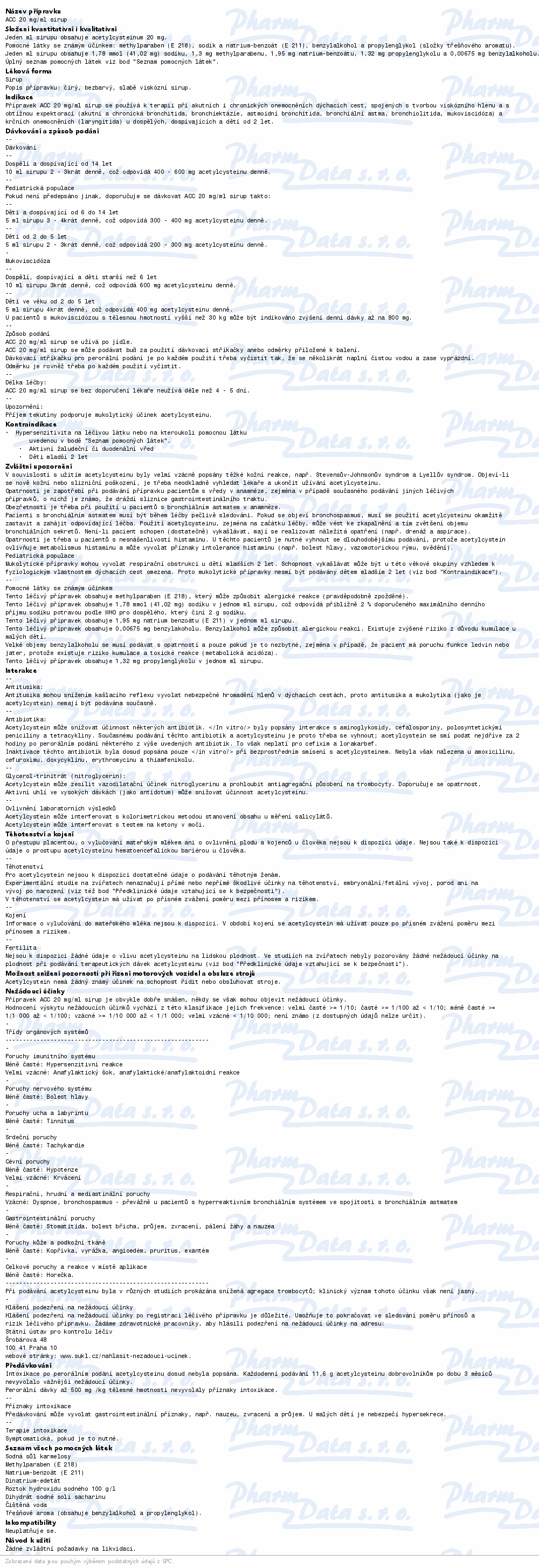 Přípravek¨ACC 20 mg/ml sirup se užívá k léčení onemocnění dýchacích cest, která jsou provázena intenzivní tvorbou hustého vazkého hlenu. Na doporučení lékaře se přípravek užívá u chronických onemocnění dýchacích cest. Čtěte pozorně příbalový leták. číst více