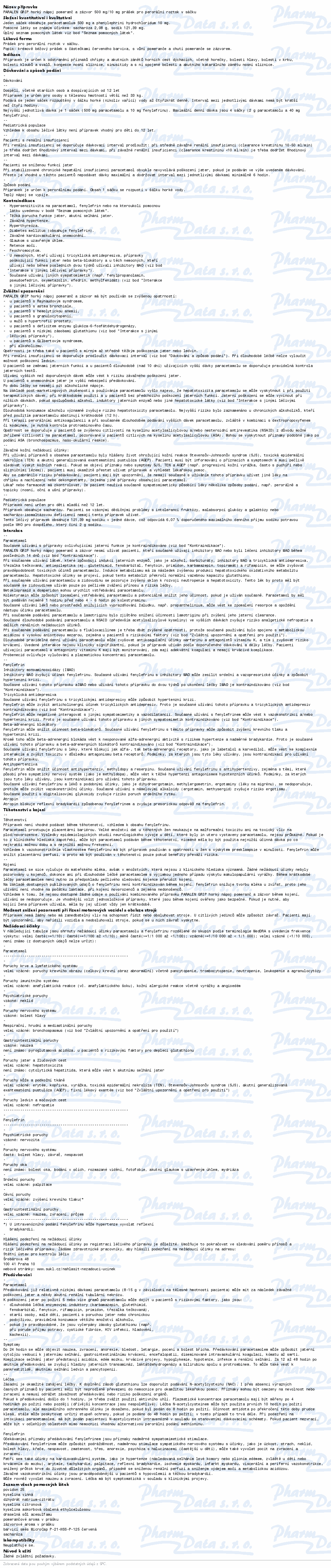 PARALEN GRIP HORKÝ NÁPOJ POMERANČ A ZÁZVOR 12 SÁČKŮ