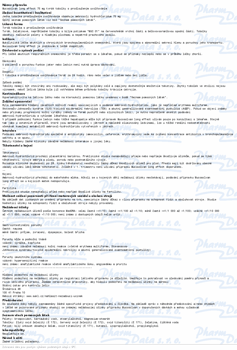 MUCOSOLVAN long effect je určen k mukolytické léčbě akutních a chronických bronchopulmonálních onemocnění, která jsou spojena s abnormální sekrecí hlenu a poruchou jeho transportu. Čtěte pozorně příbalový leták. číst více