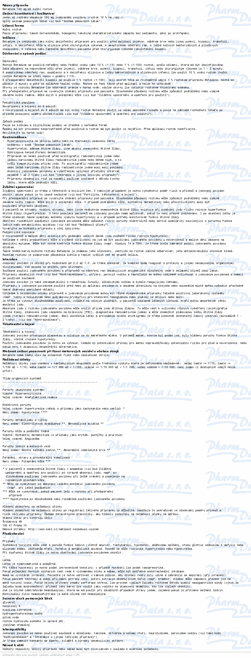 Betadine je dezinfekční prostředek, který ničí řadu choroboplodných zárodků (antimikrobiální účinek) a je vhodný k dezinfekci pokožky a sliznic. Působí na bakterie, plísně a viry. Čtěte pozorně příbalový leták. číst více