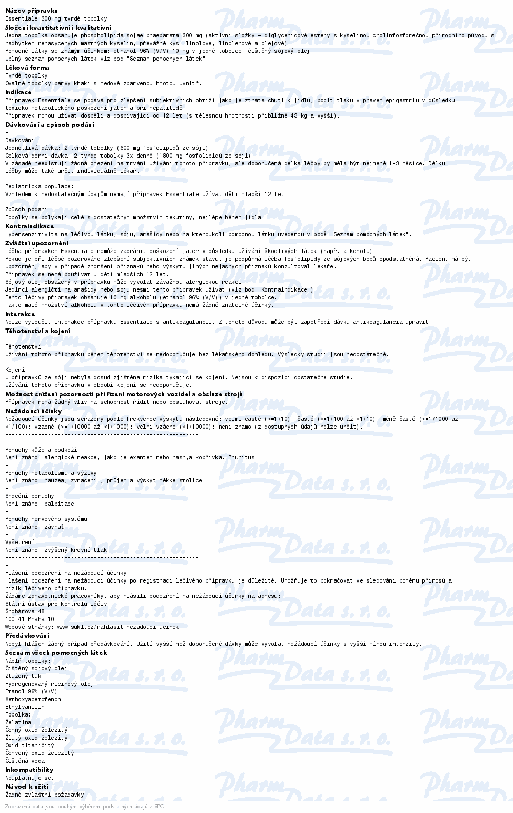Essentiale se podává pro zlepšení subjektivních obtíží jako je ztráta chuti k jídlu, pocit tlaku v pravém epigastriu v důsledku toxicko-metabolického poškození jater a při hepatitidě. Přípravek mohou užívat dospělí a mladiství od 12 let. Čtěte pozorně příbalový leták. číst více
